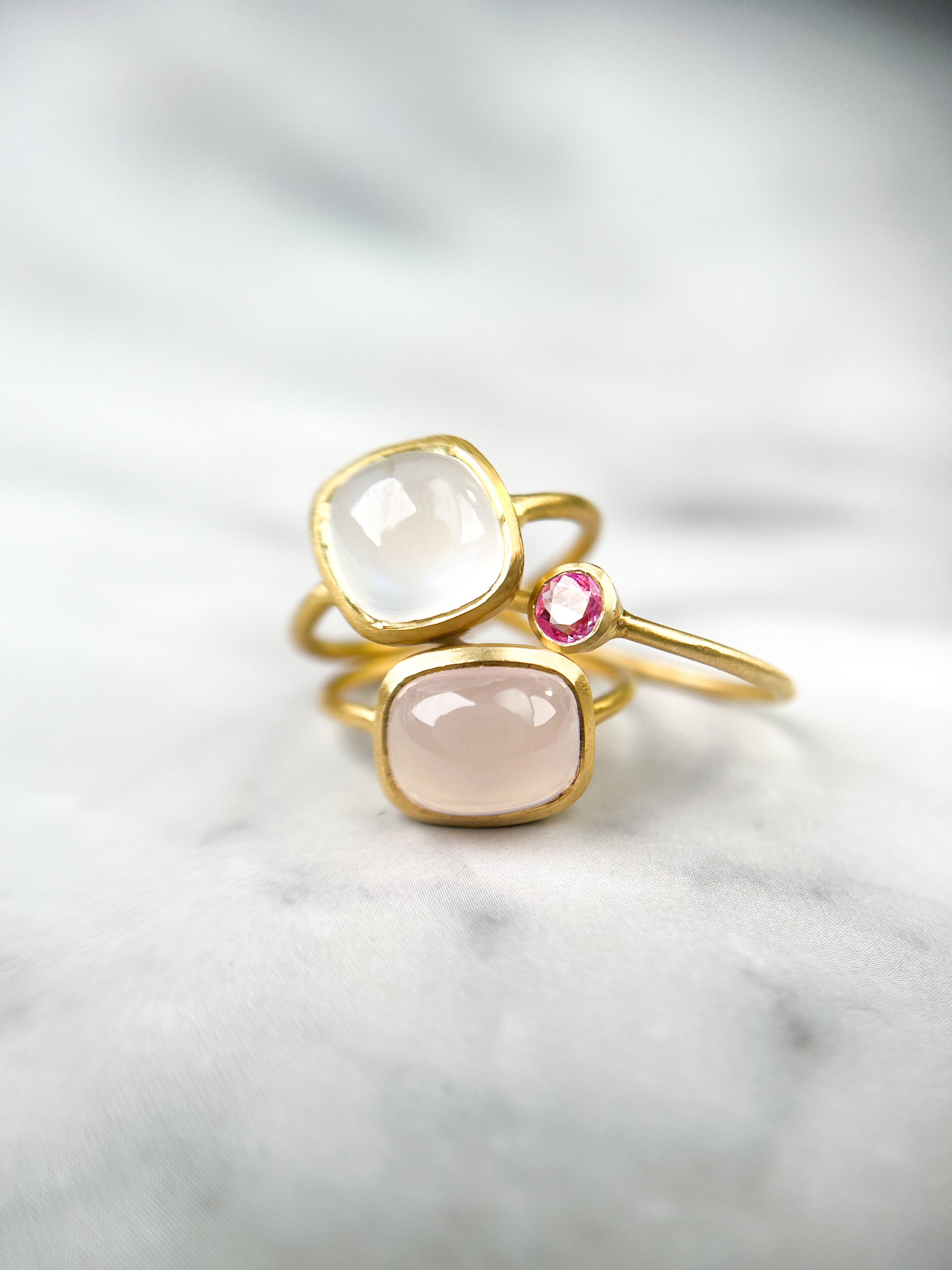桜の花びらのような淡くかわいらしいカラーのローズクォーツのリングです。