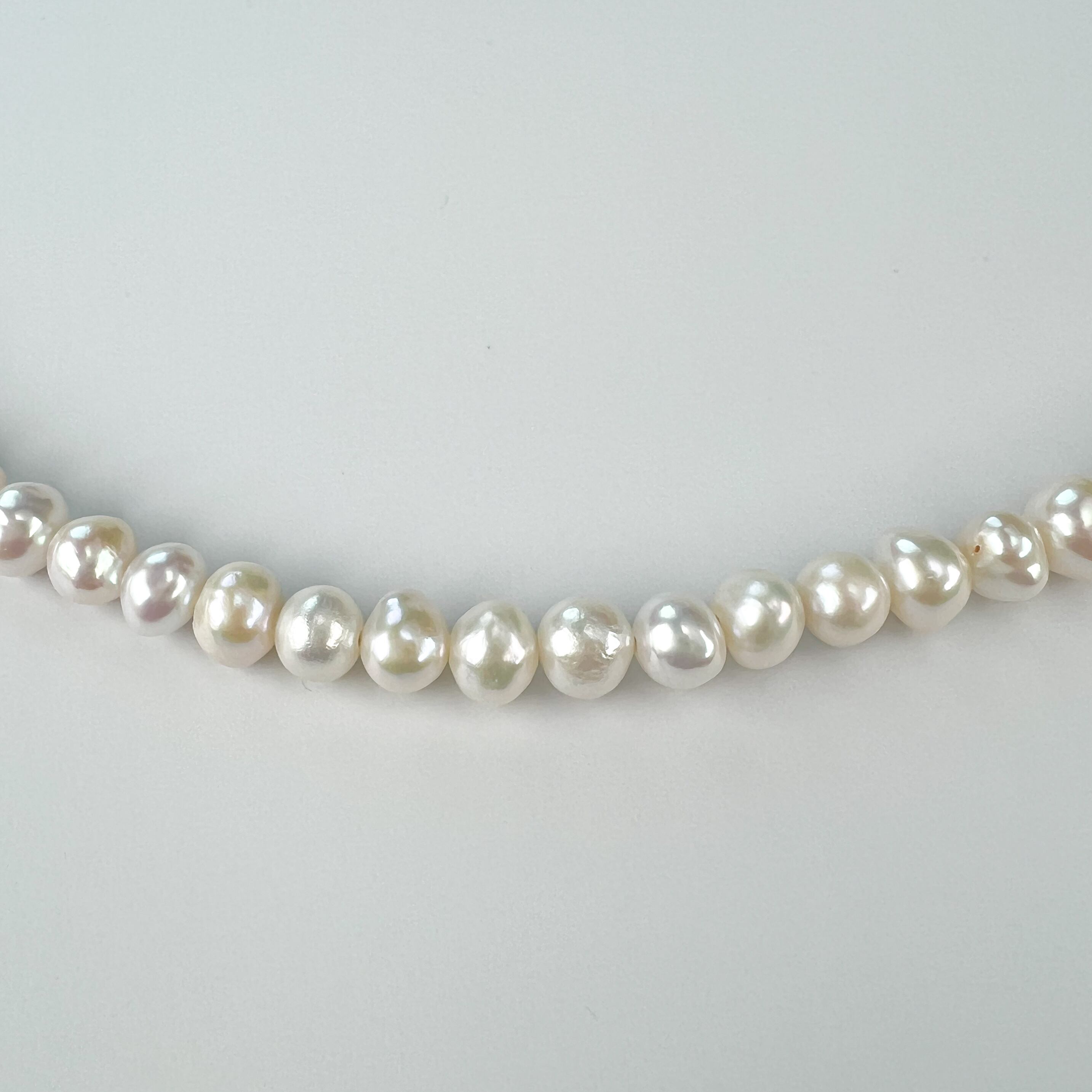ネックレスに使用しているパールは天然のもので、一粒一粒個体差があり、エクボと呼ばれるへこみやキズ、変色などもあります。