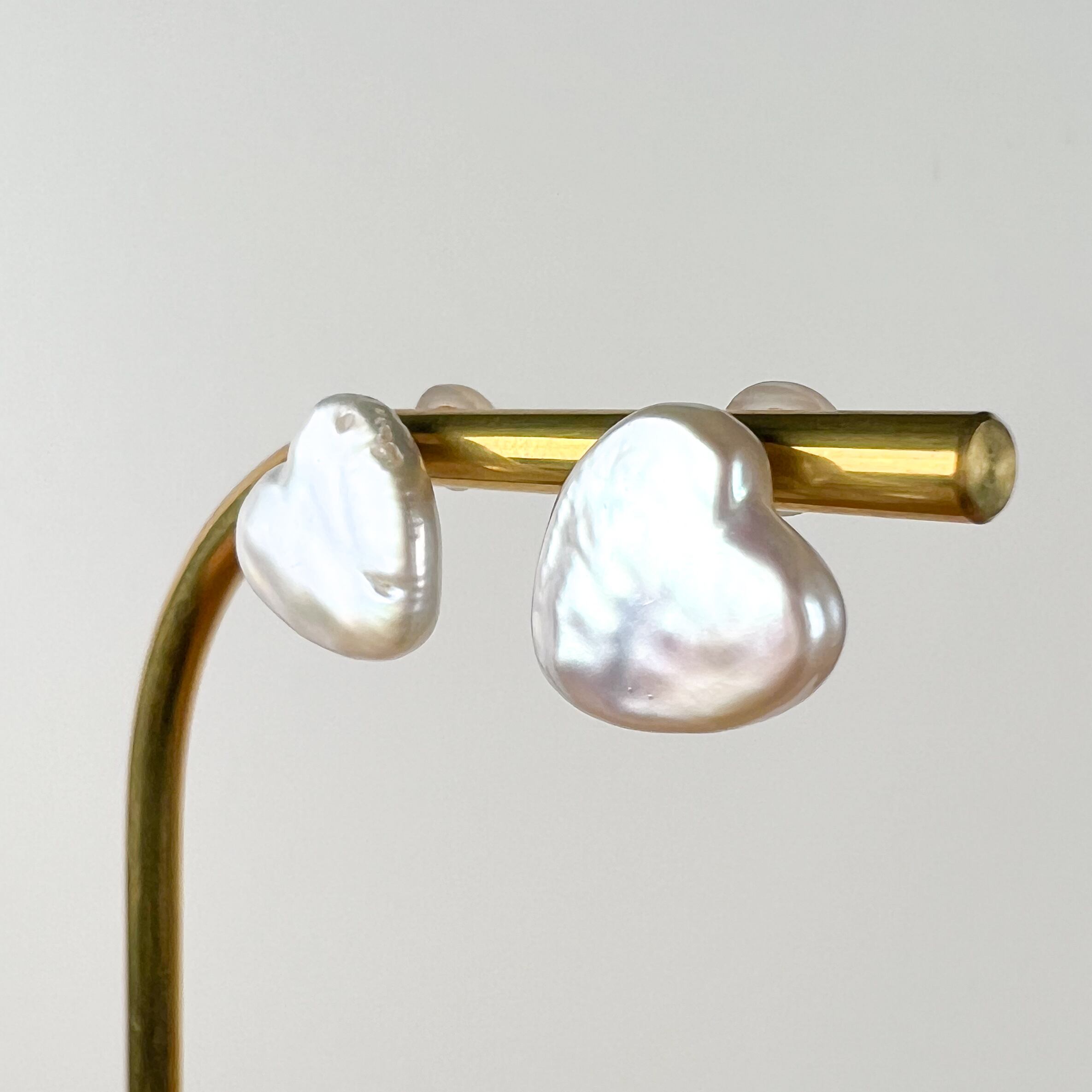 ハートの形をした淡水パールのスタッドタイプのピアスです。