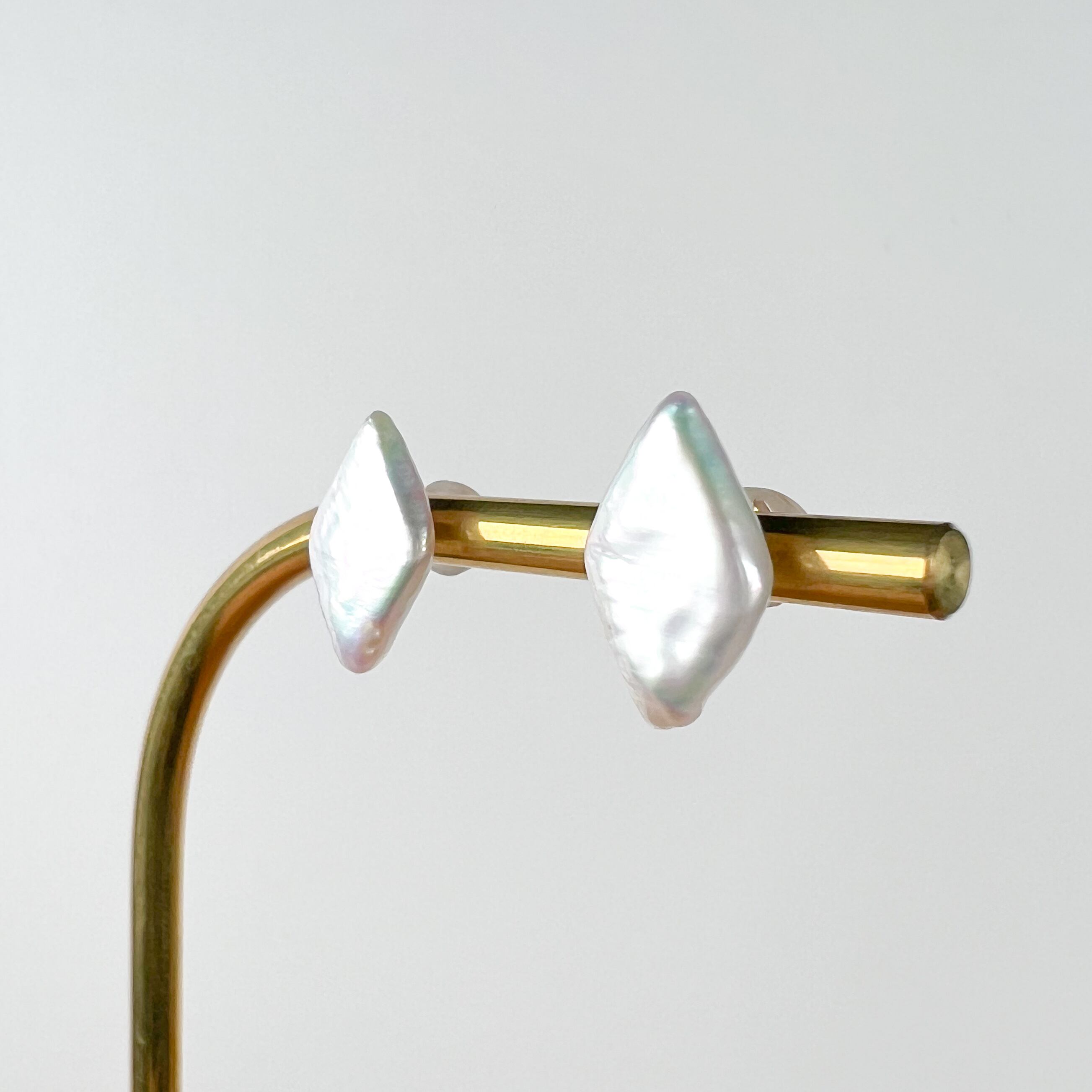ひし形の形をした淡水パールのスタッドタイプのピアスです。