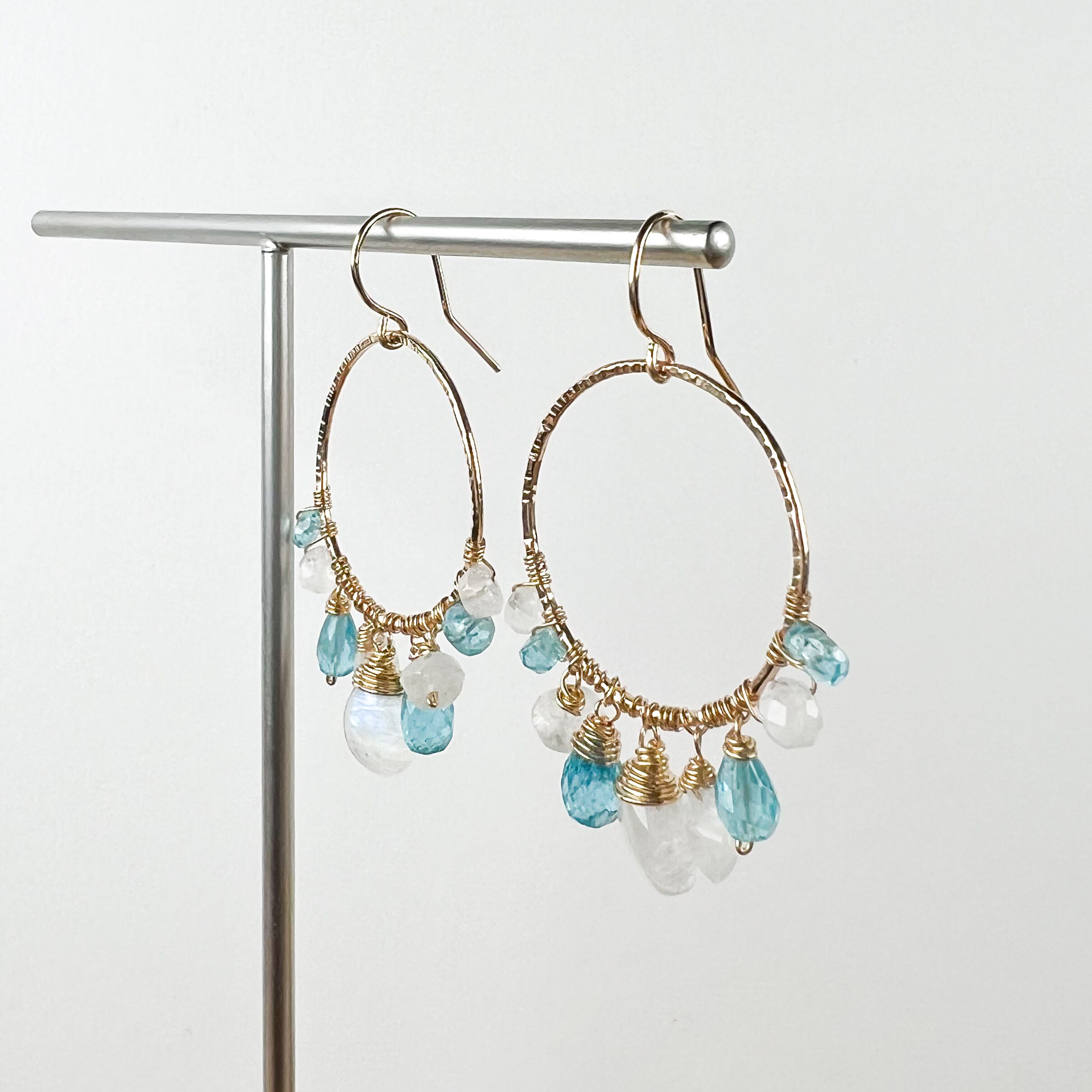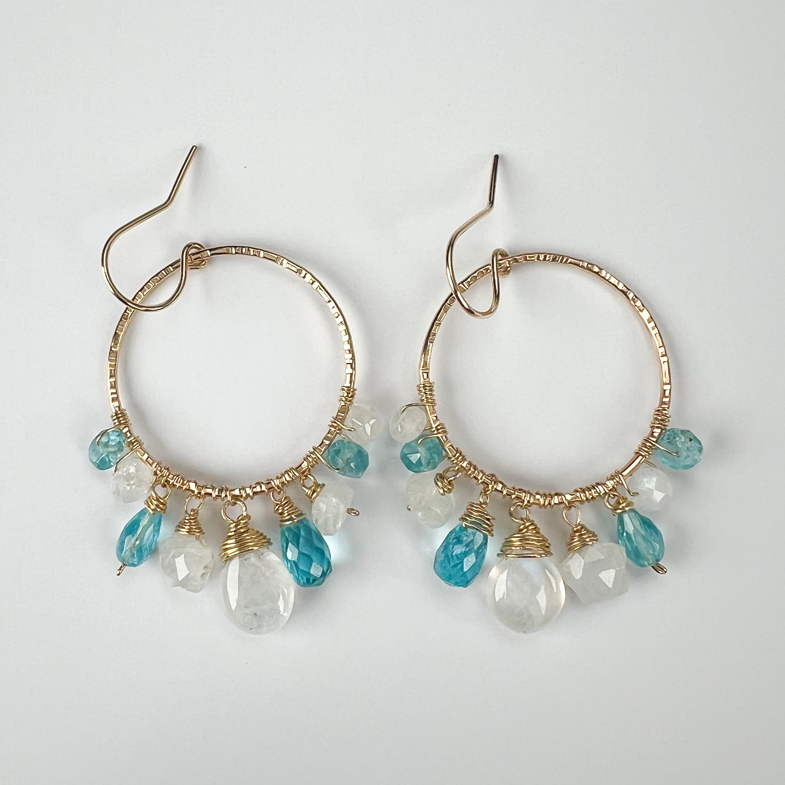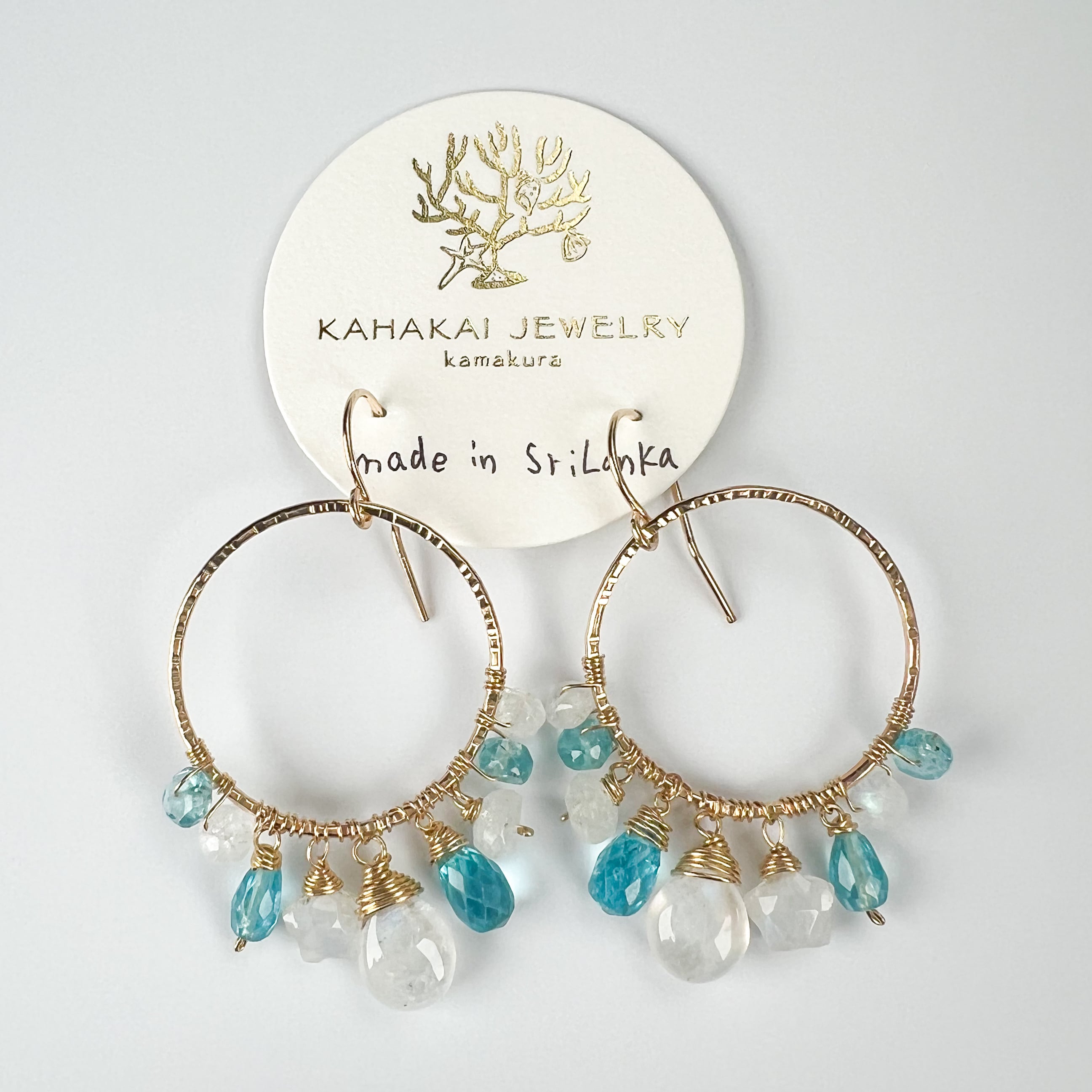 【KAHAKAI JEWELRY kamakura】14kgf ネオンブルー&ホワイト シャンデリアピアス