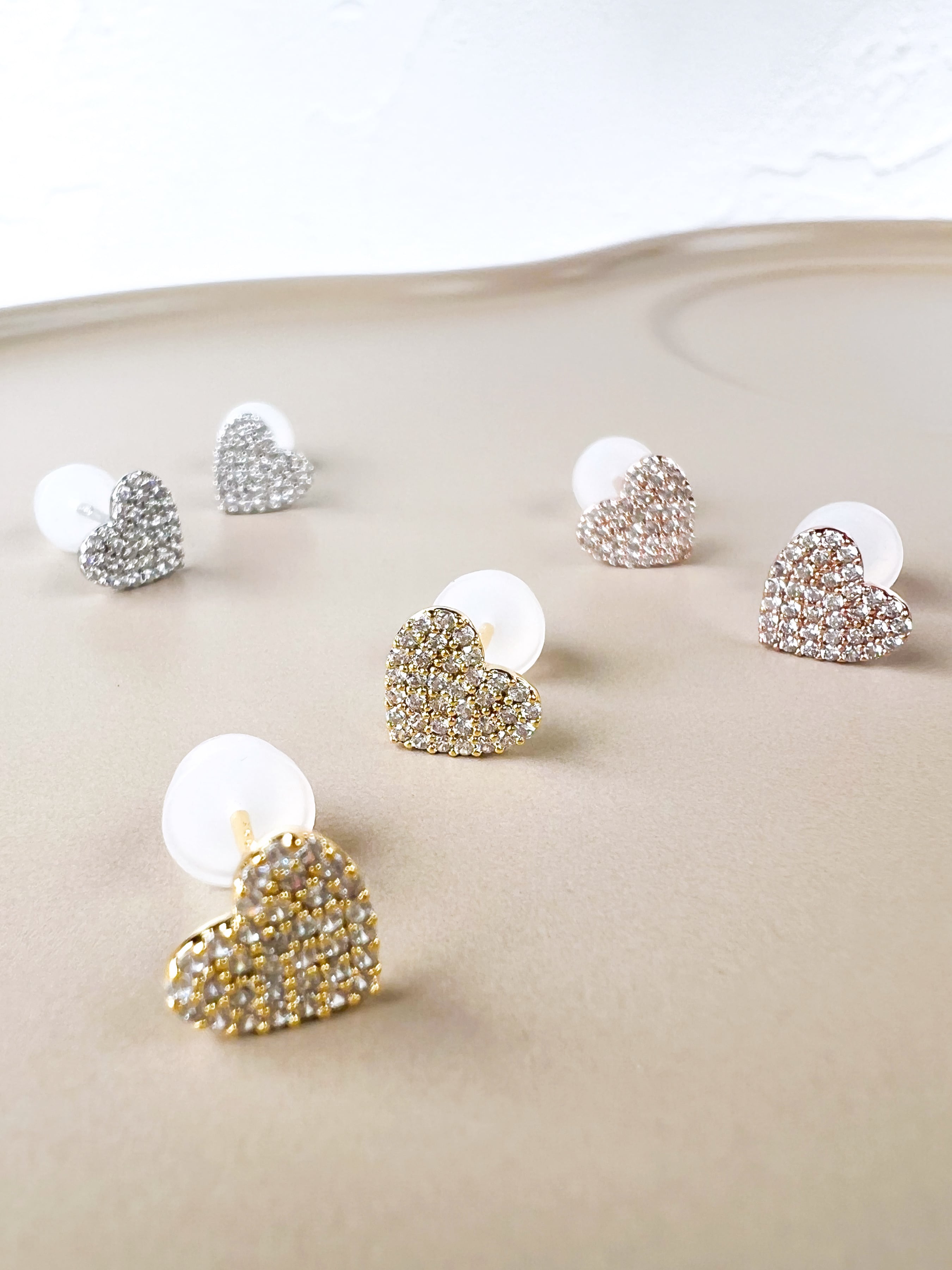 ストーンを敷き詰めたハートがきらりと輝くパヴェのピアスです。
