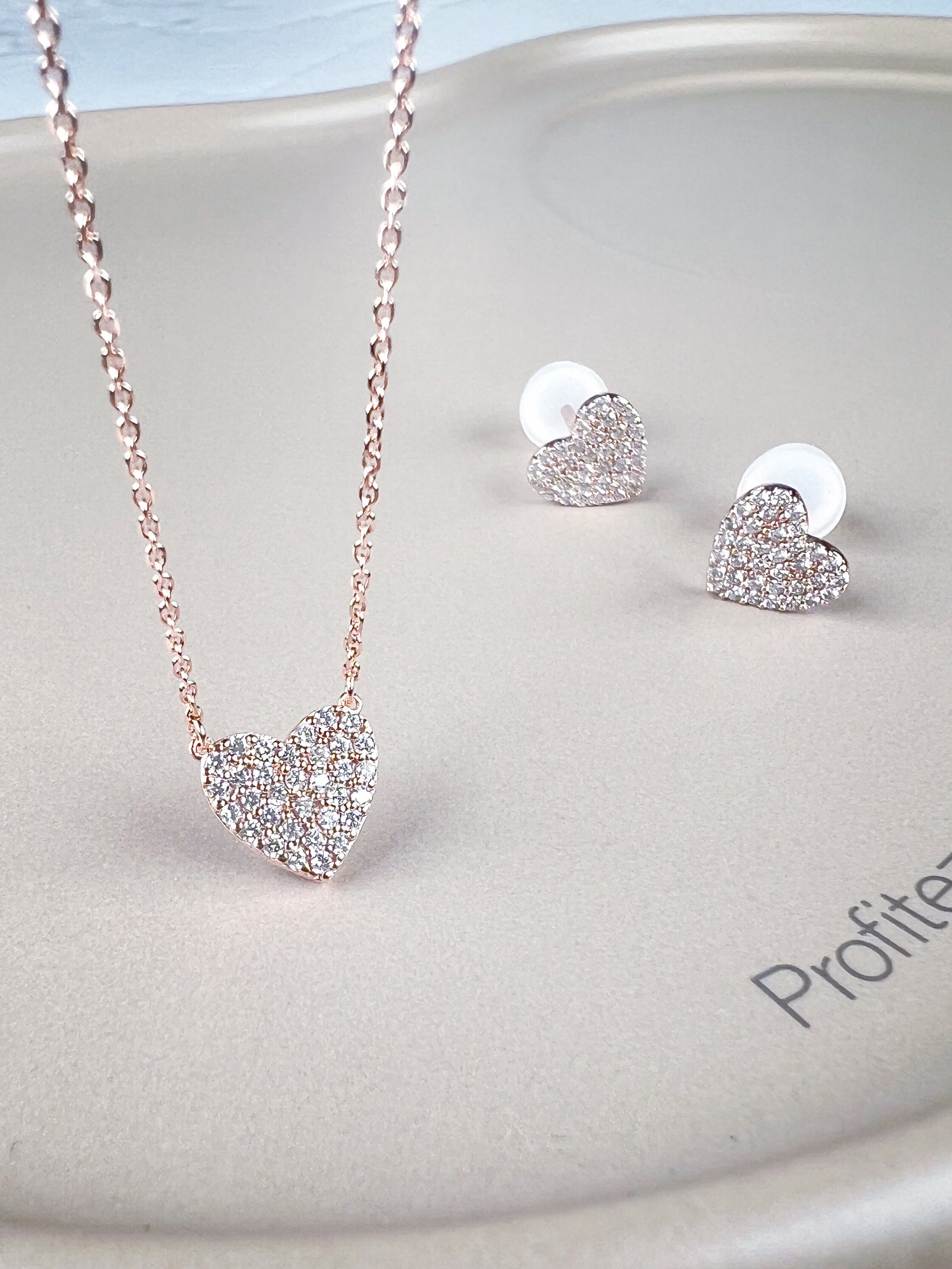 【SILVER925】ハート パヴェ ピアス <ピンクゴールド>