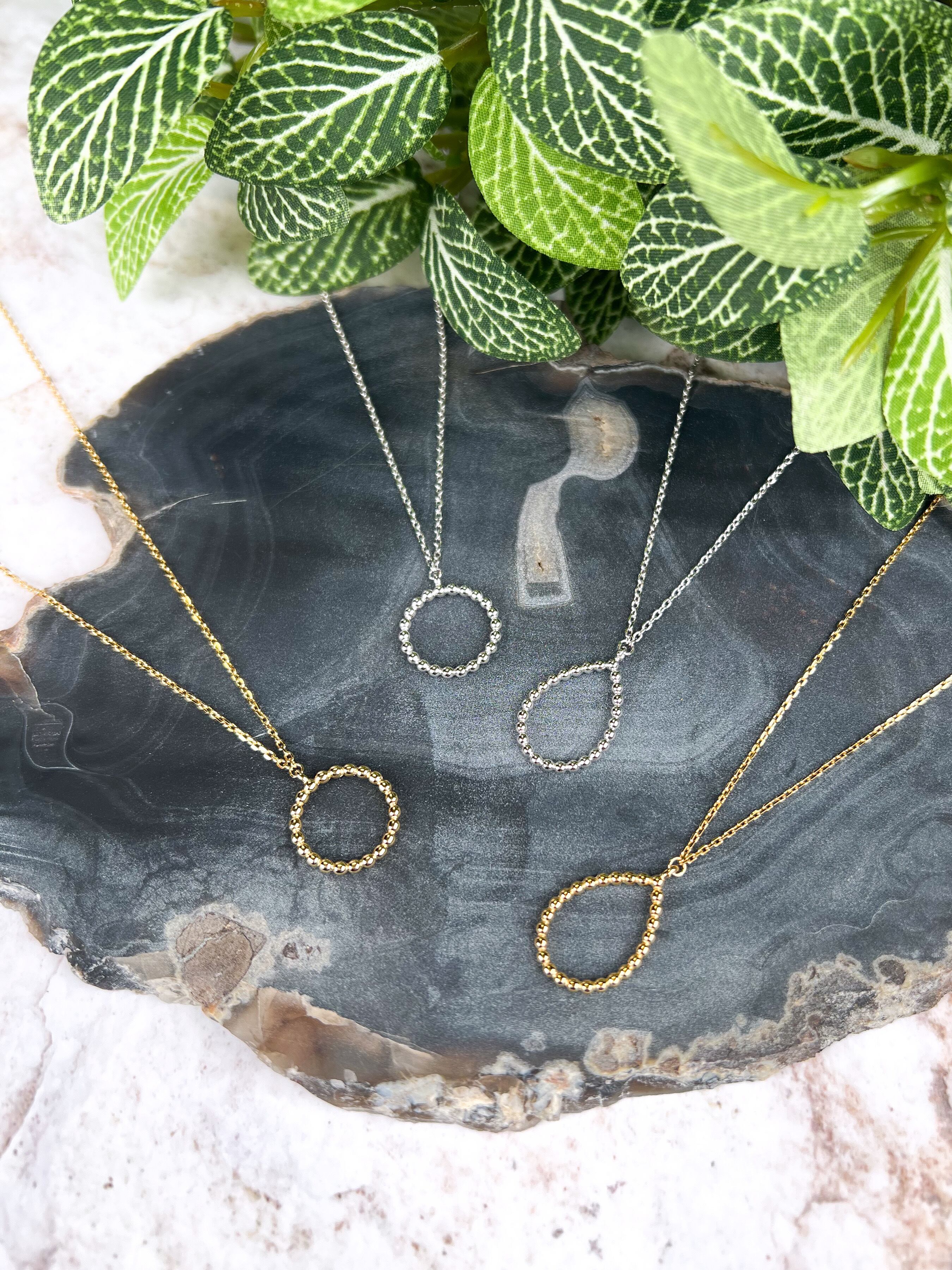 小さなつぶつぶがサークル状に連なったトップのネックレスです。