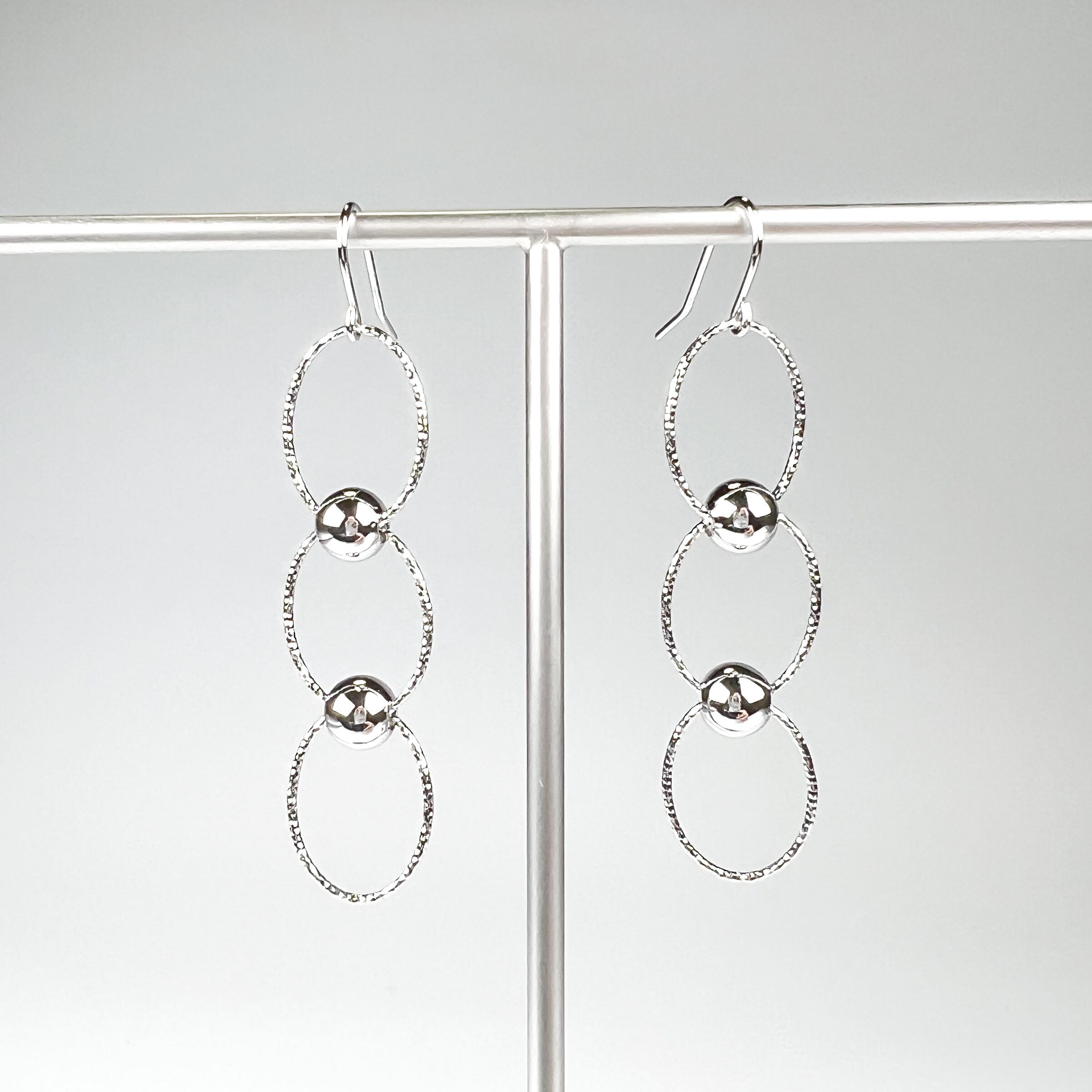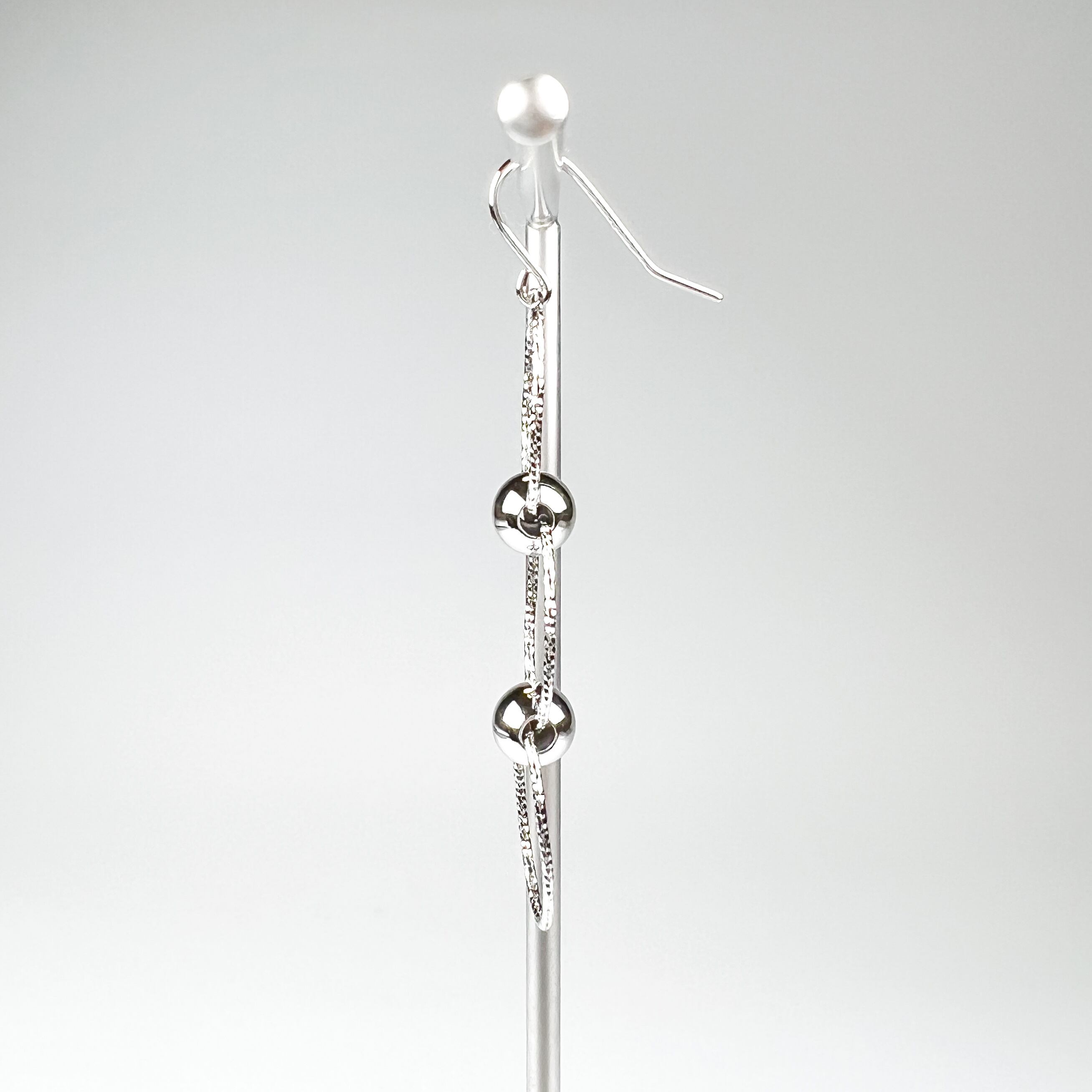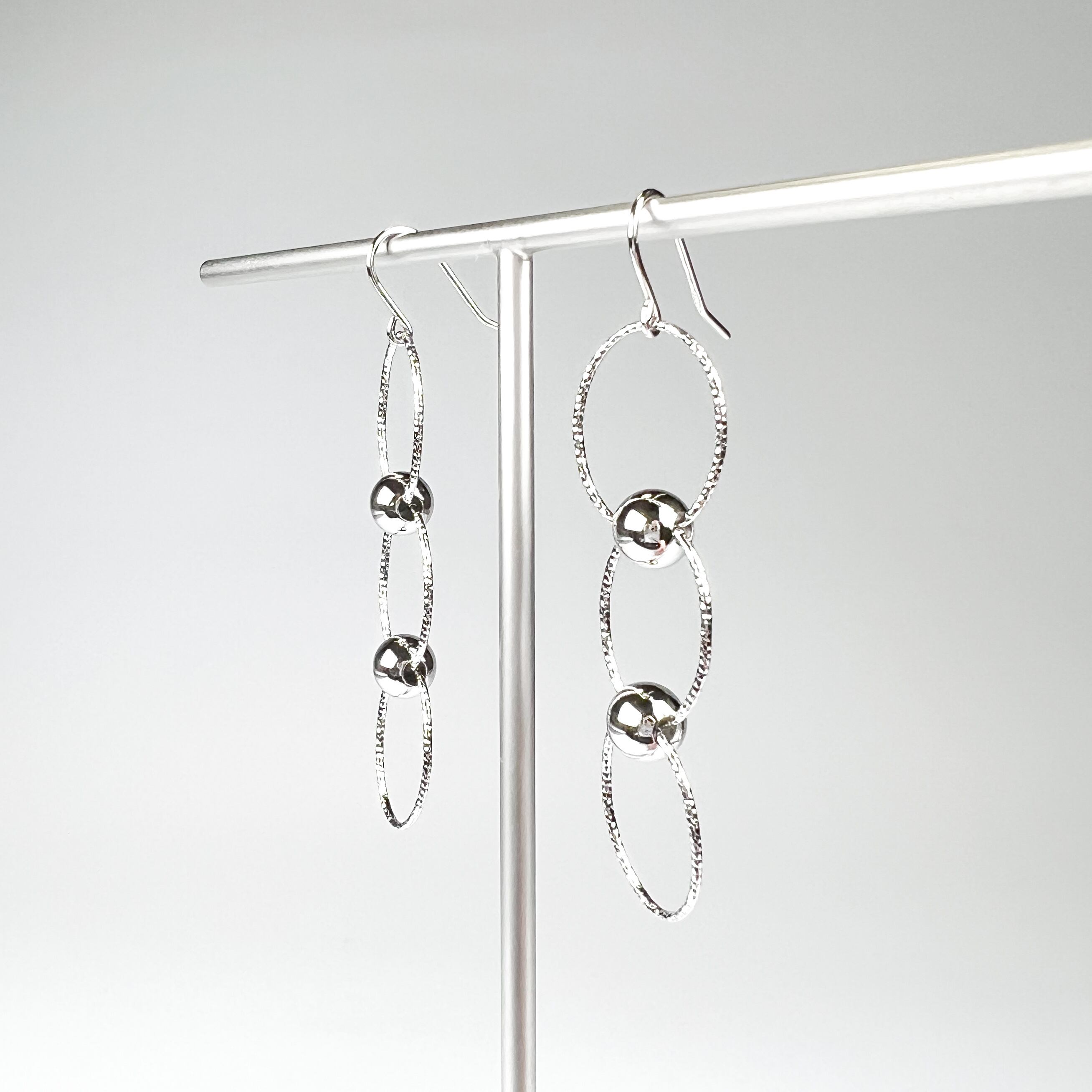 楕円のフープの間に丸玉が組み込まれたフックタイプのピアスです。
