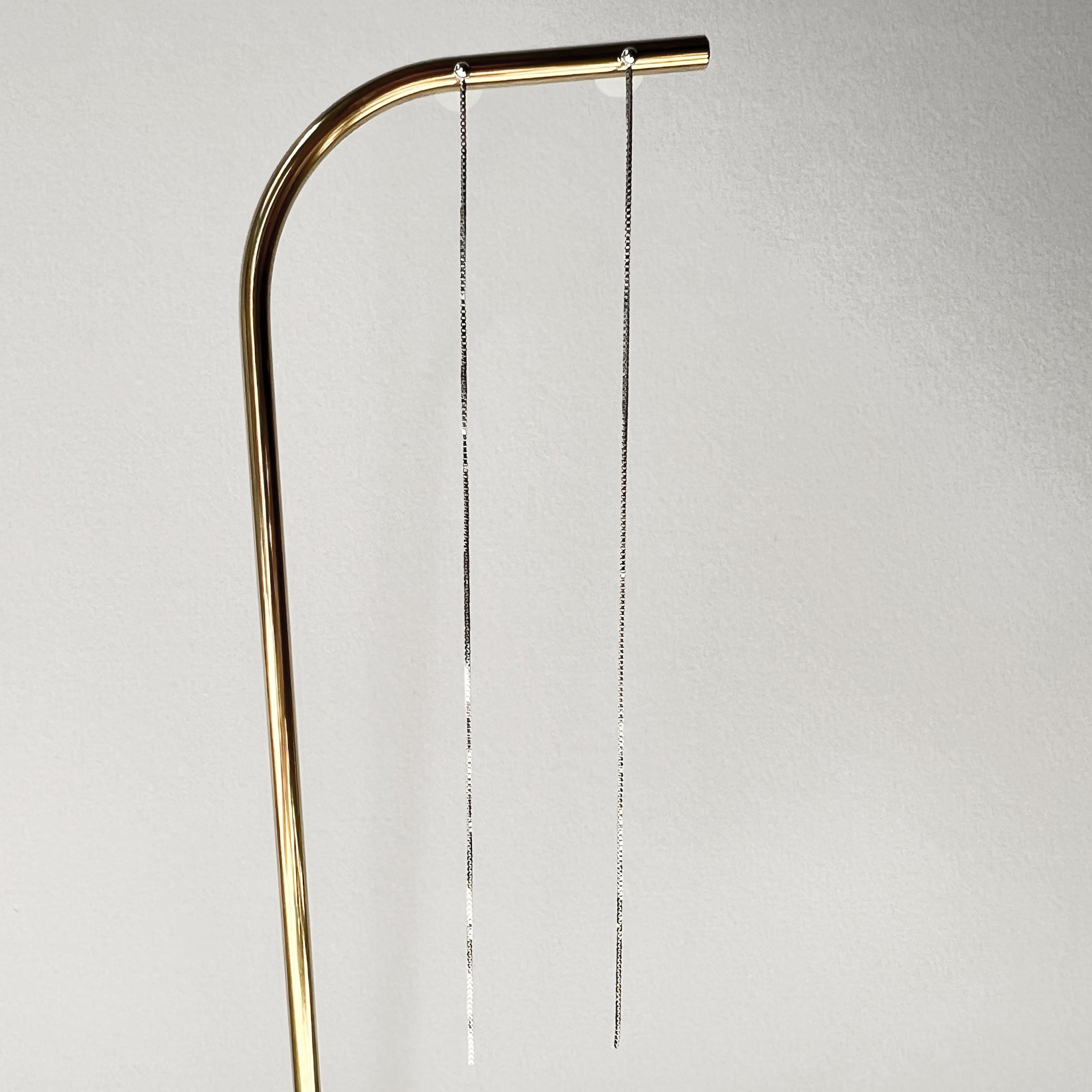 上品な輝きを放つシルバーのチェーンが、耳元を華やかに彩ります。
