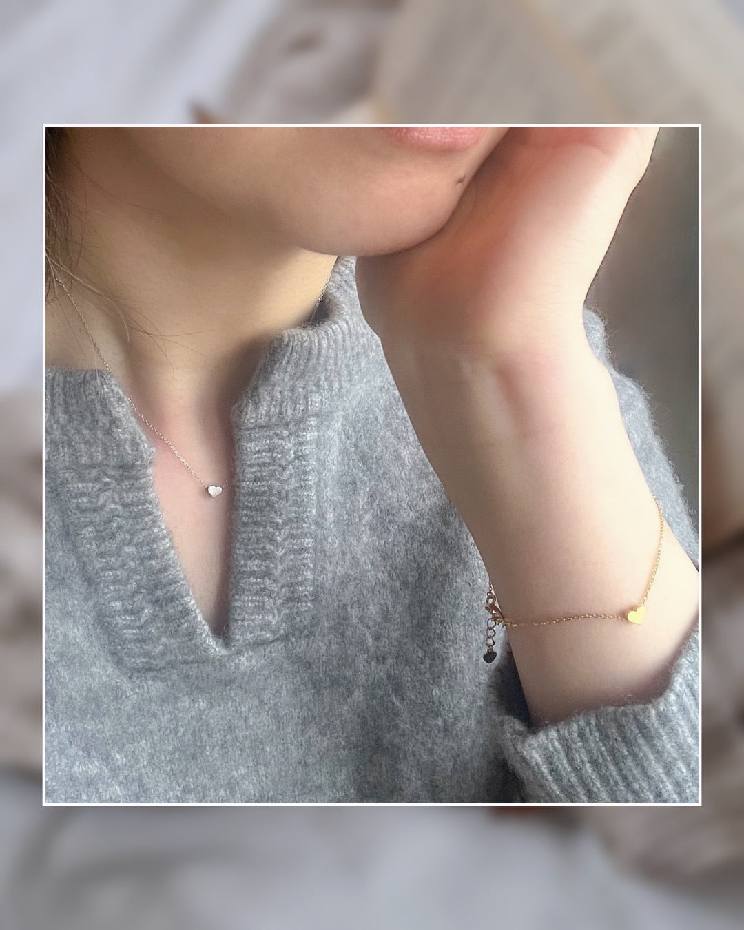 小さいハートがキラリと輝くブレスレットです。